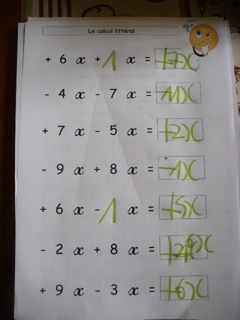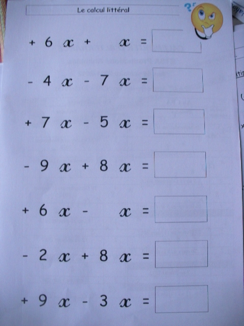 - 3ème étape : Après l'addition, on a travaillé sur la soustraction du type 6x - 2x =