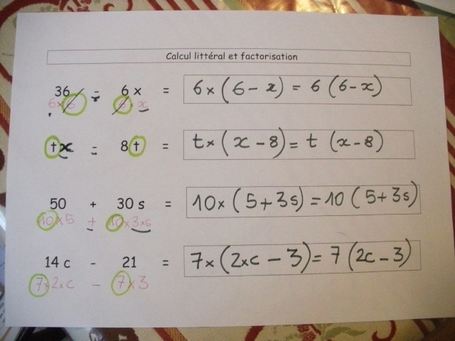 On révise la mise en facteur en ajoutant la particularité d'avoir des lettres dans l'équation.