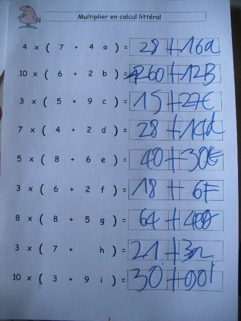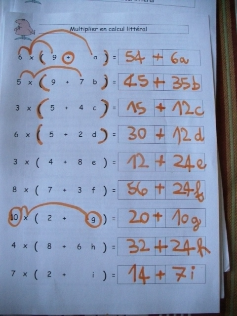 On révise la distributivité en ajoutant la particularité d'avoir des lettres dans l'équation.