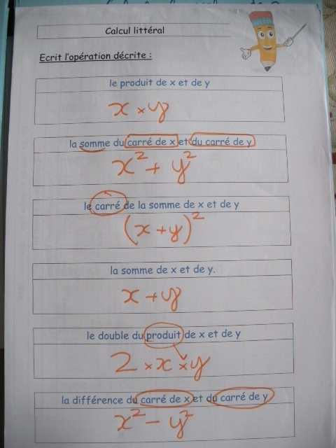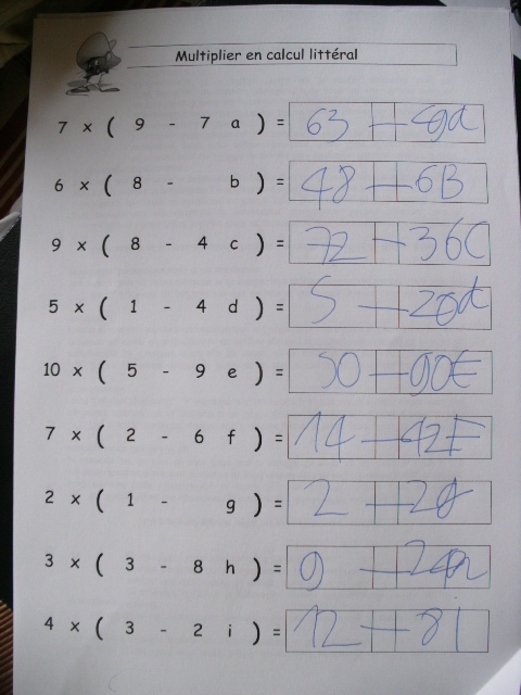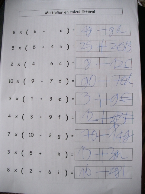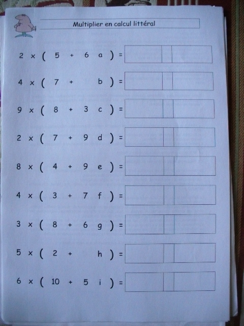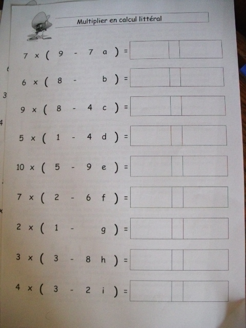 - 1ère étape: il faut réviser la multiplication des nombres en calcule littéral.