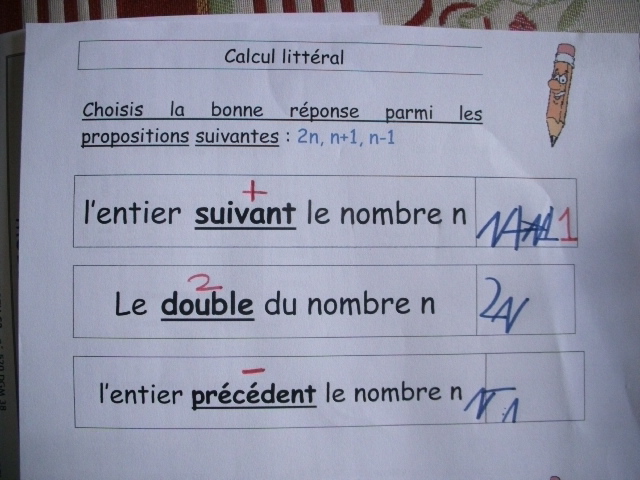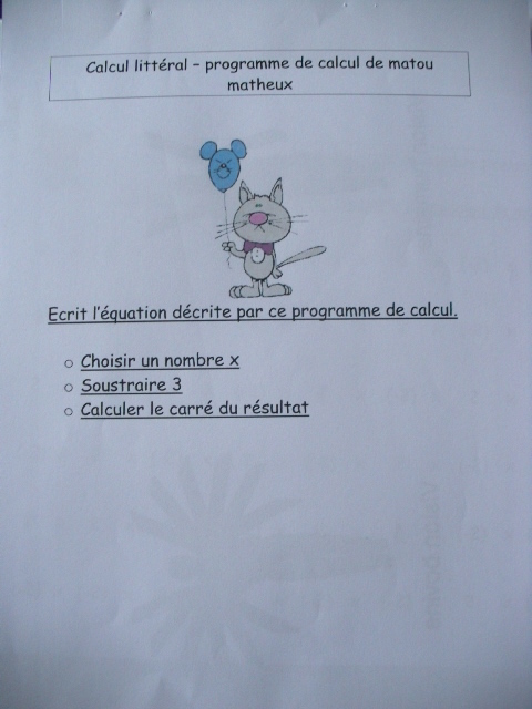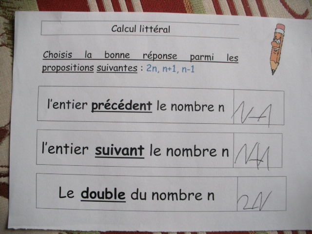 Fiches "initiation au calcul litteral"