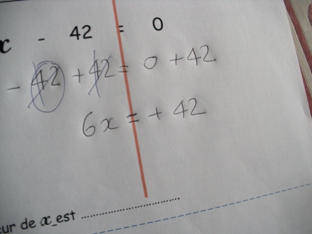 On s'occupe tout d'abord de réduire l'addition ou la soustraction. Ici, on ajoute de part et d'autre "+42"