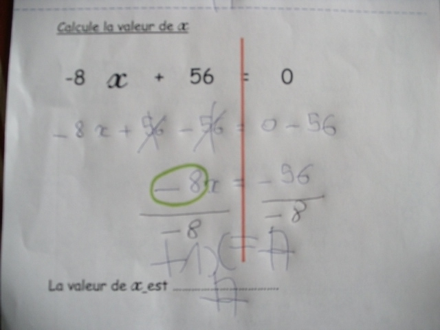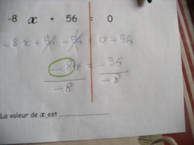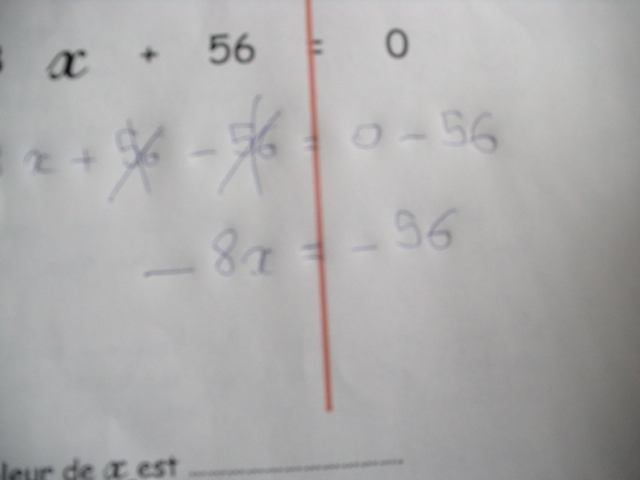 soustraction. Ici, on sosutrait de part et d'autre "-56"