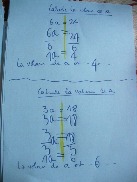 côté du signe "égal". Donc notre prémière série a consisté à travailler