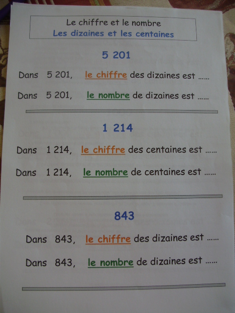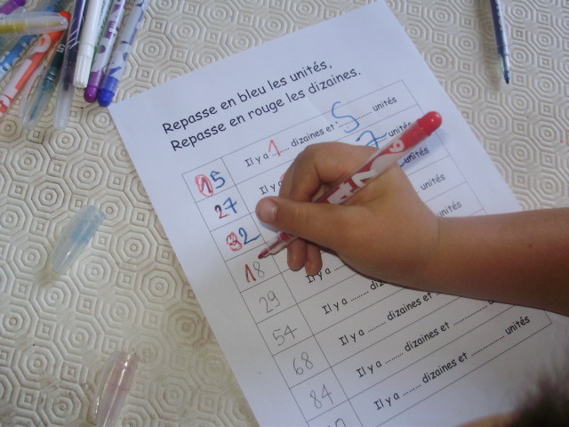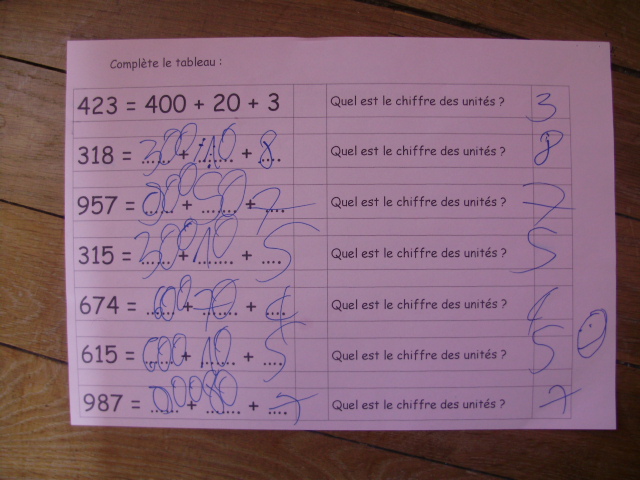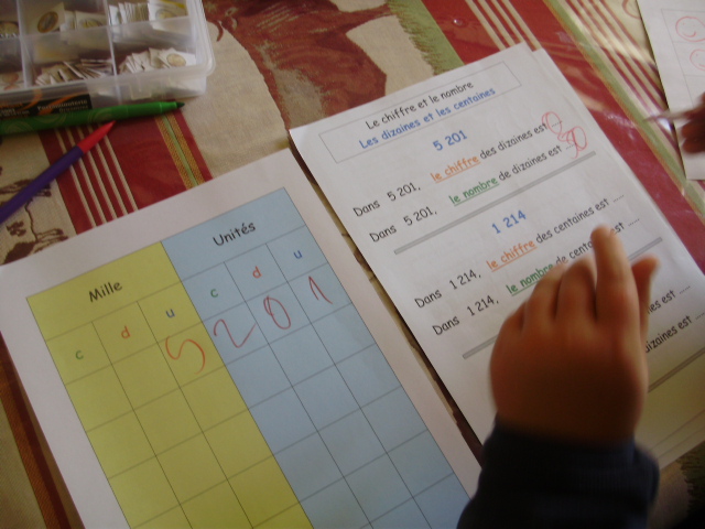 Pour cela, je demande à notre fils d'écrire le nombre étudié dans un