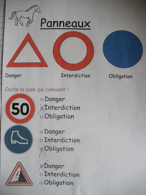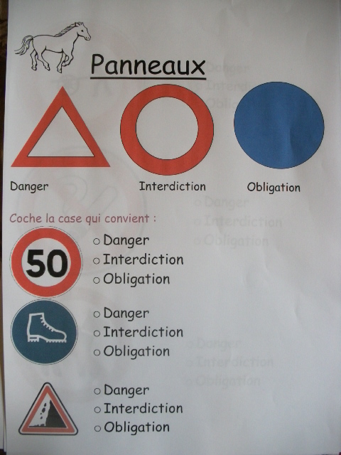 A ce travail, on ajoute un travail sur fiche pour mieux comprendre les panneaux.