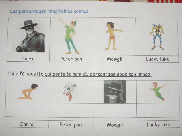 Voici une troisième série de fiches, réalisées selon le même principe pour travailler sur 4 nouveaux personnages.