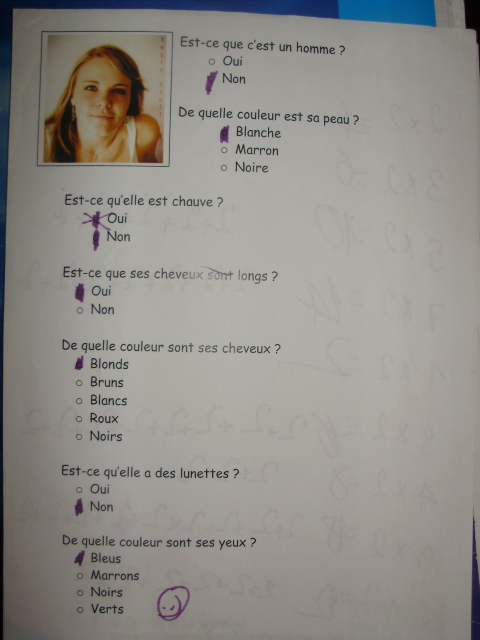 Puis, j'ai réalisé des fiches QCM qui permettent d'aborder plus largement la description d'un personnage.