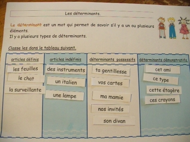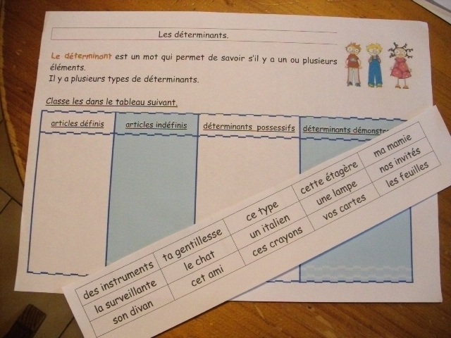 Avec ces fiches, on commence à aborder les subtilités du classement des déterminants qui est abordé en sixième.