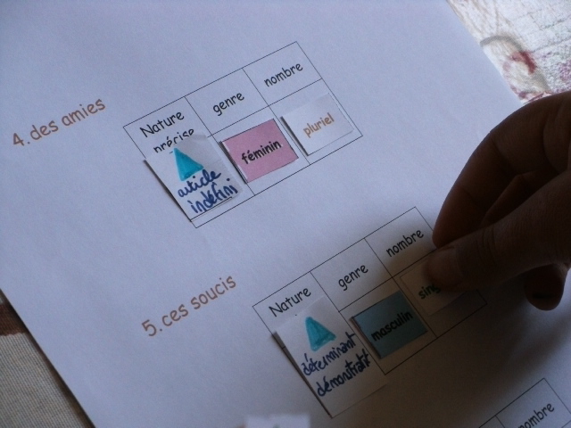 nous a présenté le planeur d'analyse gramaticale de M Montessori. J'ai