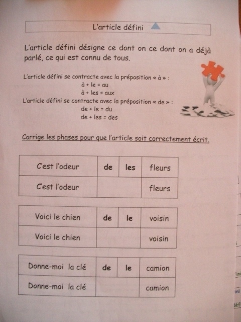 avons déjà abordées : les déterminants articles définis ou indéfinis,