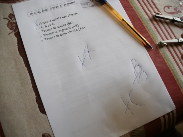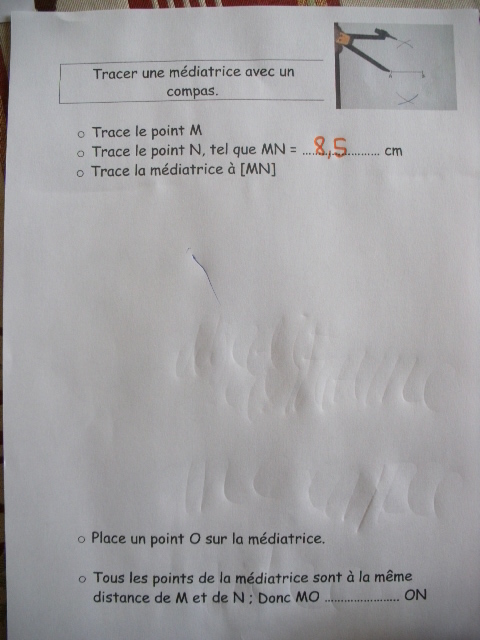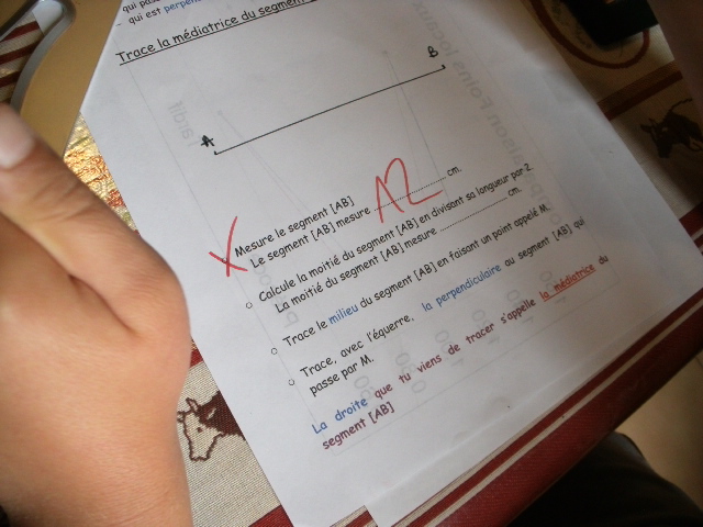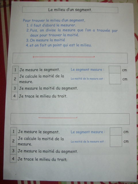 milieu d'un segment. J'ai donc créé une fiche que j'ai imprimé un grand
