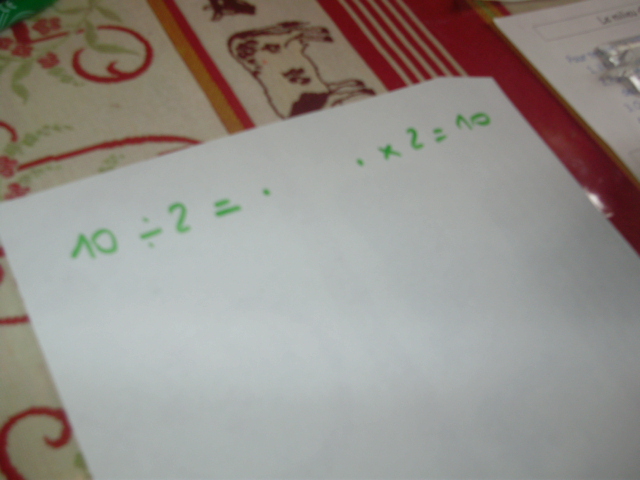 Notre fils connaît très bien les tables de multiplication, on calcule donc la division en comparaison.