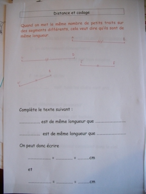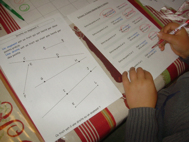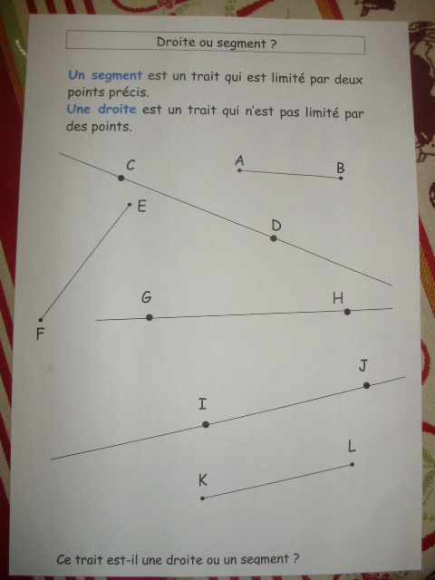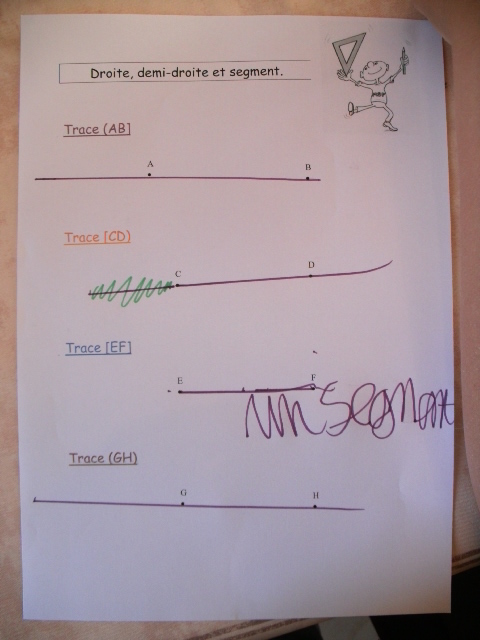 Cm1, l'enfant doit être capable de distinguer la droite, du segment.