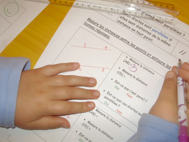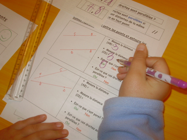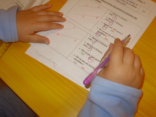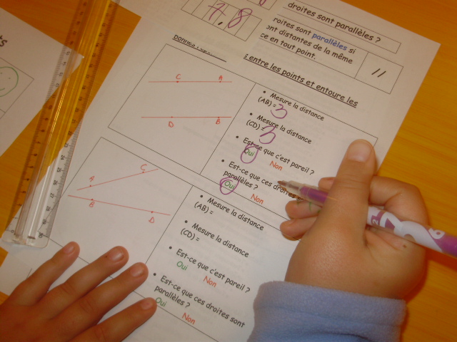 En CM1 pour identifier si deux droites