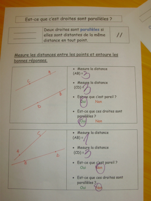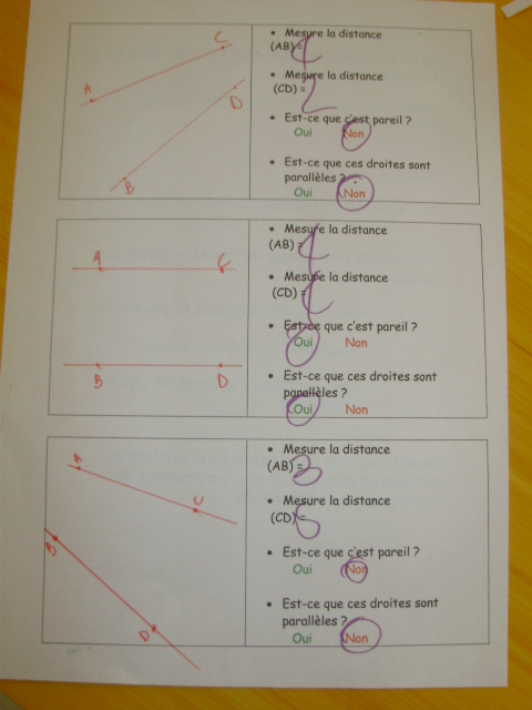 sont parallèles, le maître demande aux élèves de vérifier qu'il y a