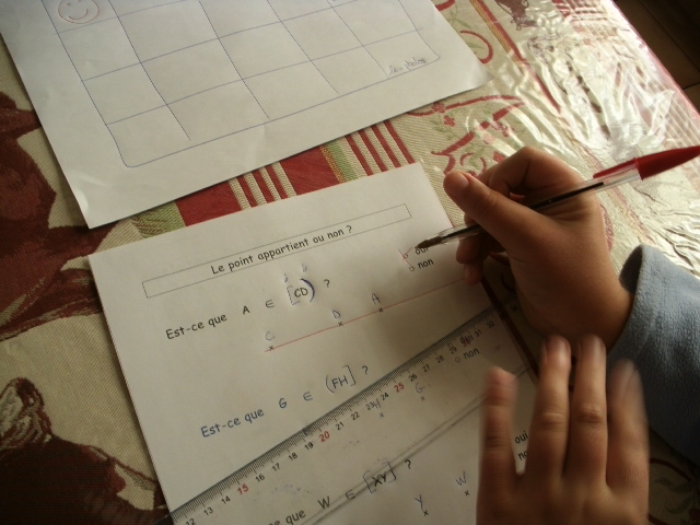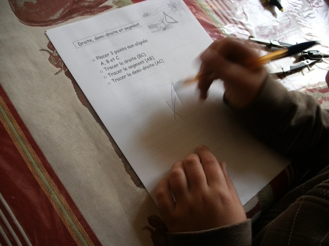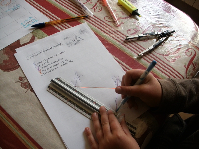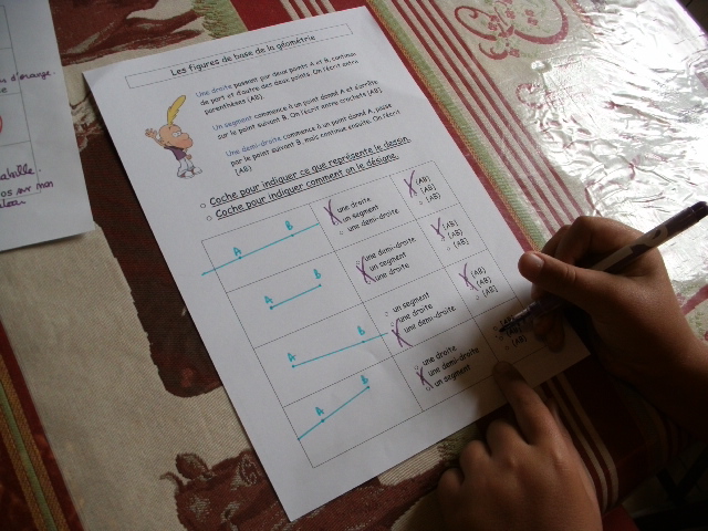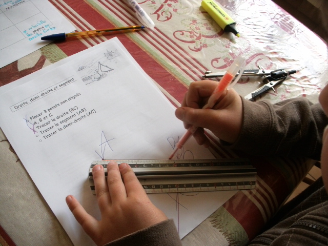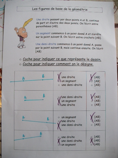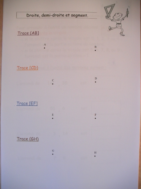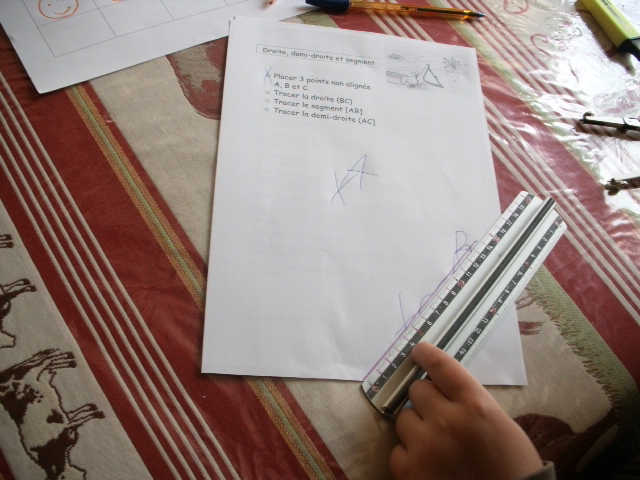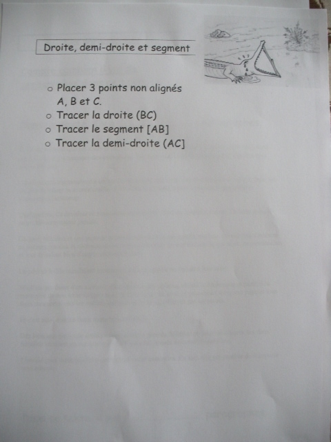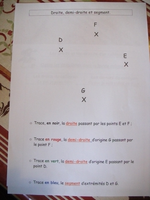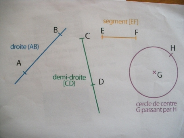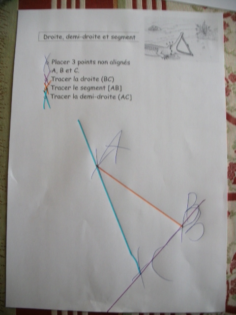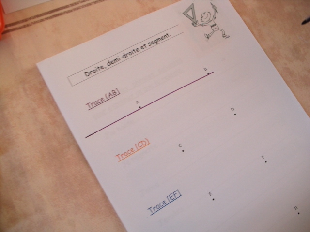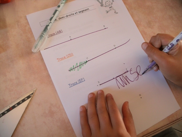 On poursuit l'apprentissage du tracé des droites, demi-droites, segment et des conventions d'écriture.
