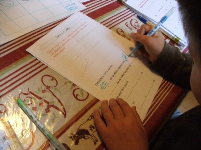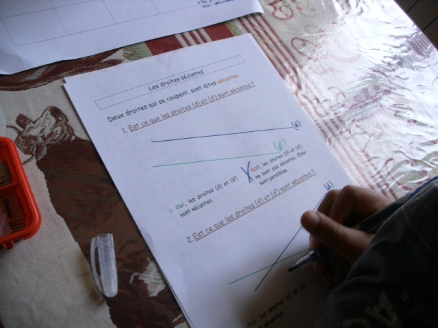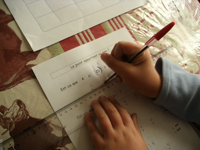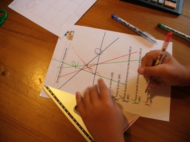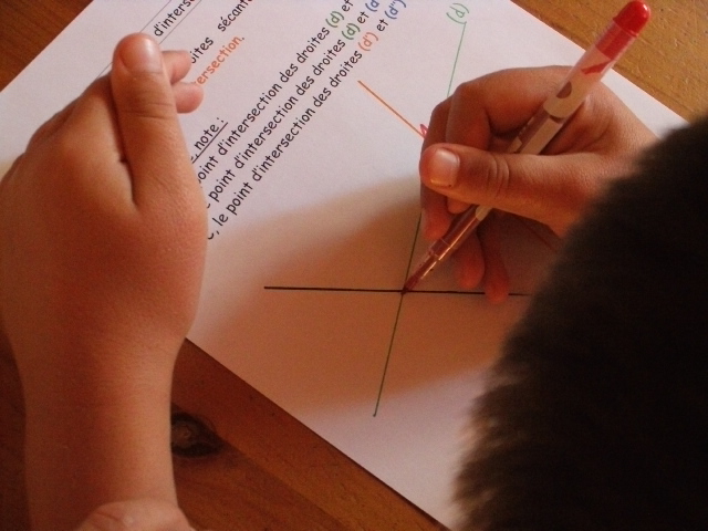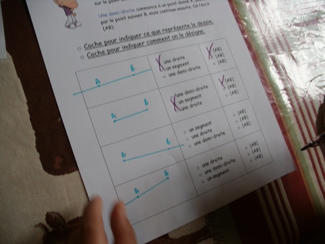 Notre fils regarde, dans le tableau, les droites qu'il doit comparer.