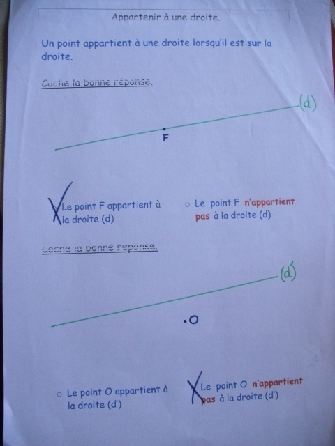 Fiches "point qui appartient ou non à une droite - série 1"