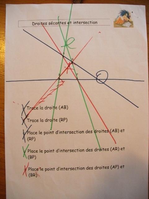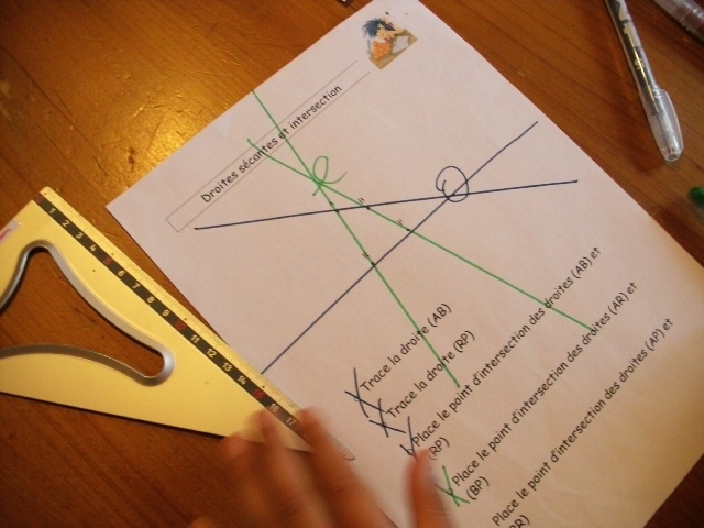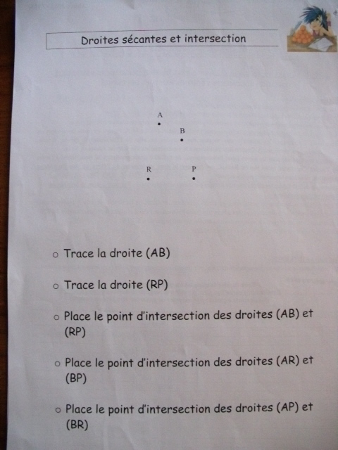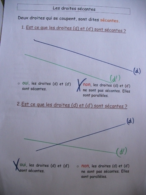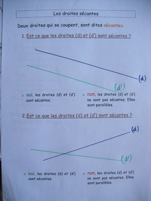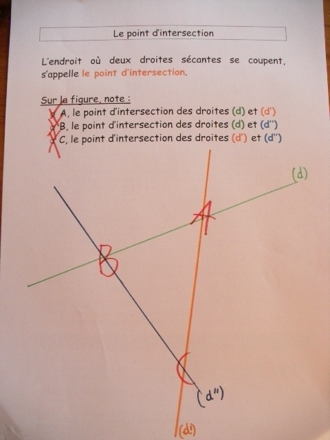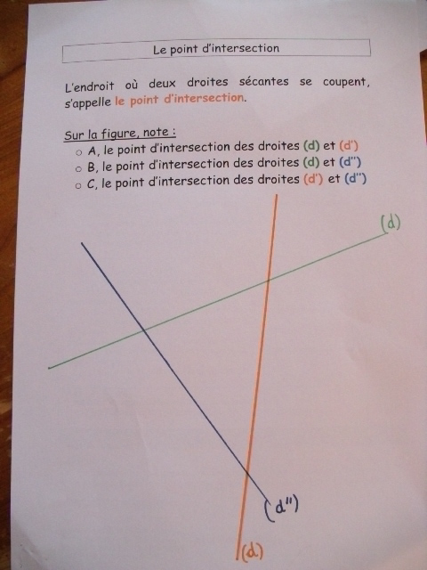 On a repris les notions de droites sécantes et de points