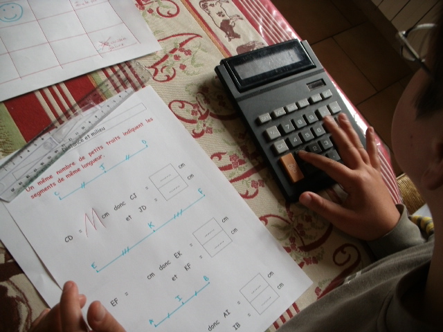 Notre fils indique le résultat de son calcul dans la case prévue à cet effet.