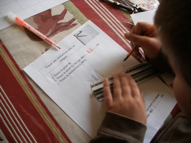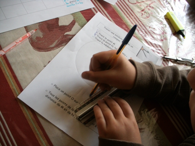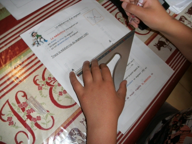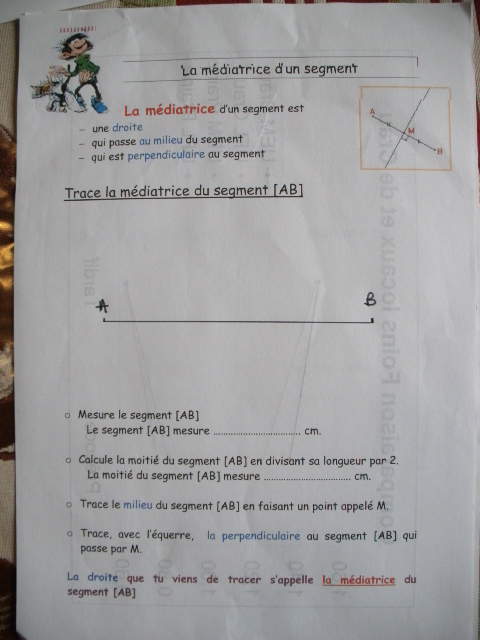 - Tracer une médiatrice avec une équerre : Je ne propose qu'une fiche en téléchargement car je dessine, à chaque séance à table, un segment de taille différente.