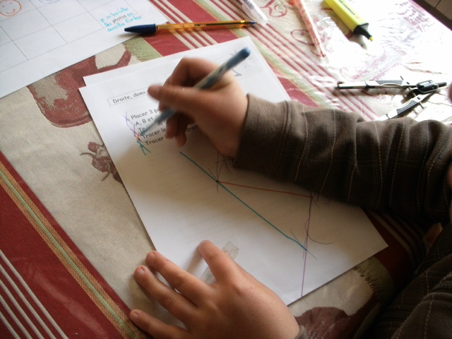 Puis, sur la feuille de gauche, il chercher les deux droites concernées