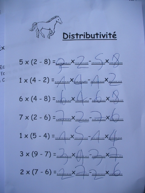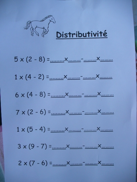 Fiches "distributivité de la multiplication / soustraction"