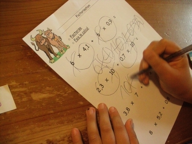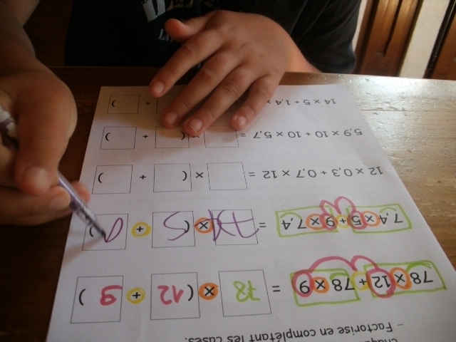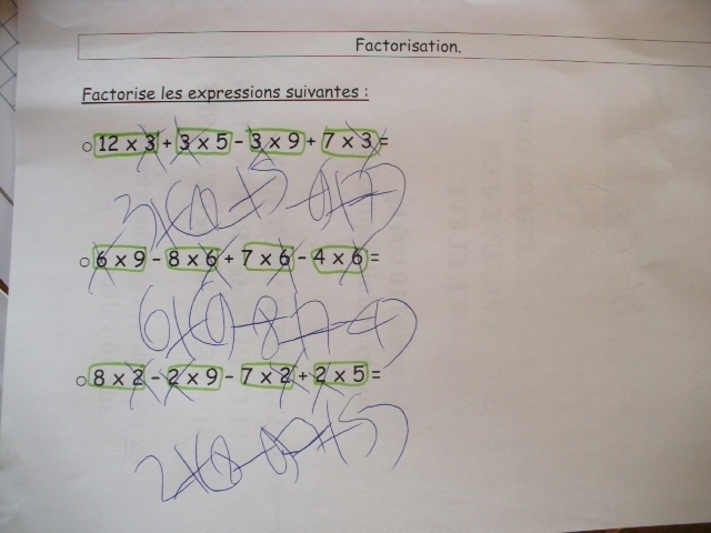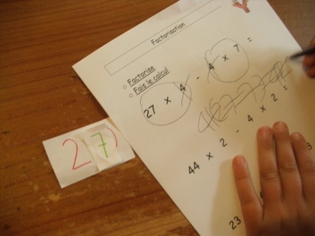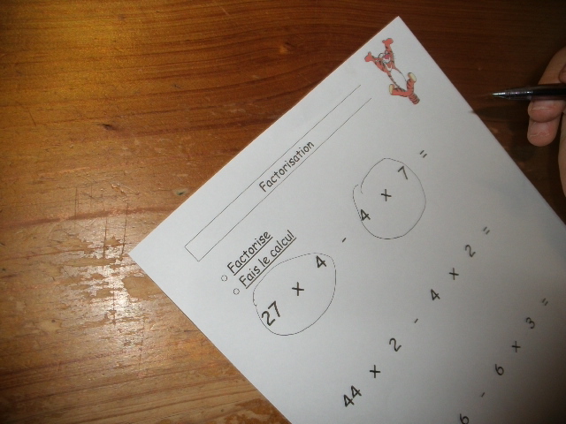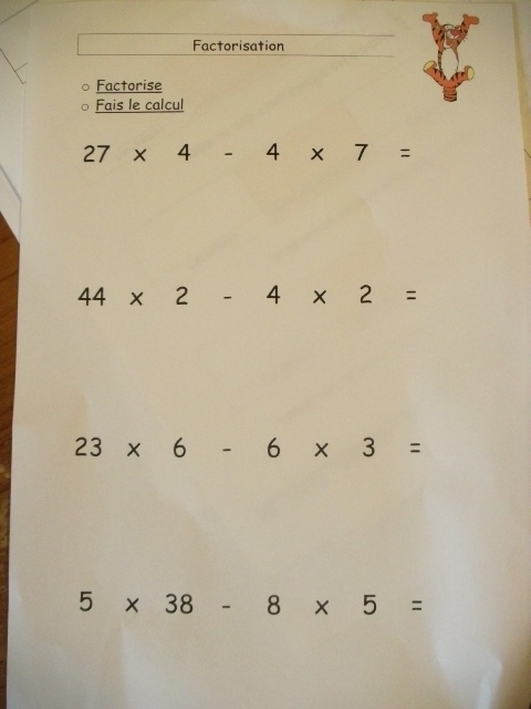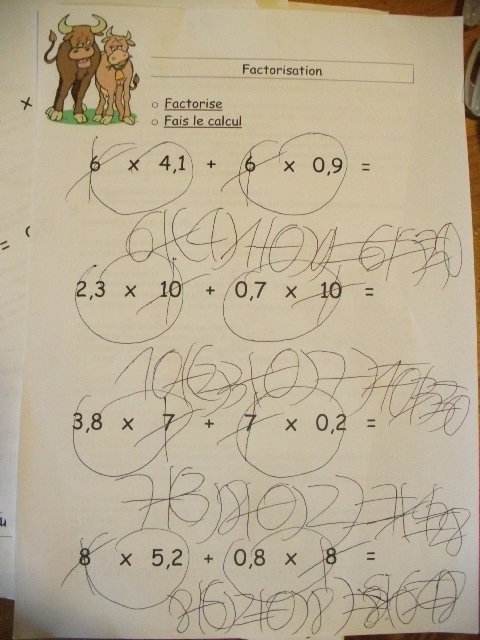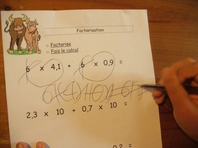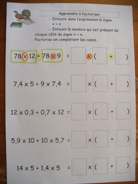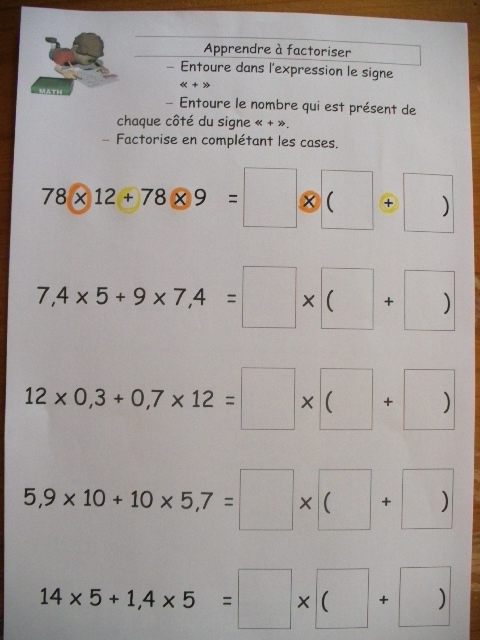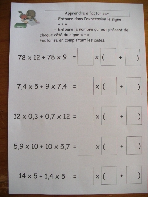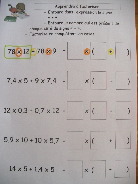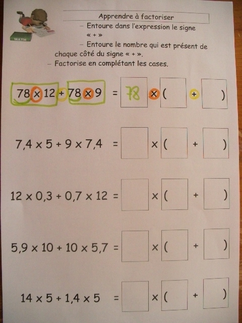 produits à mettre en facteur. Il faut que l'enfant fasse aussi