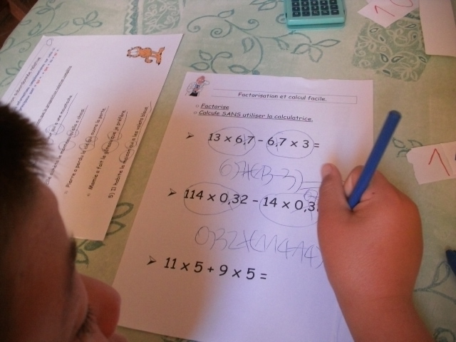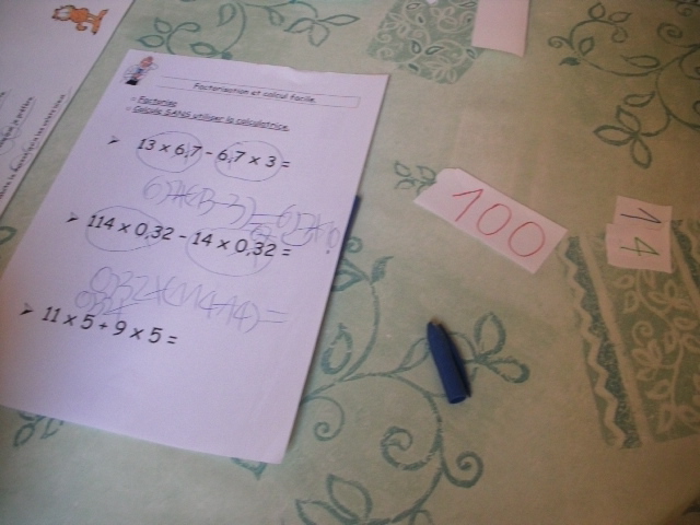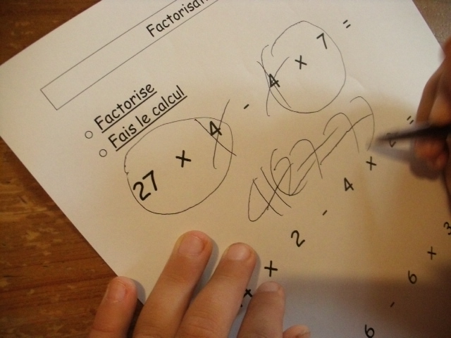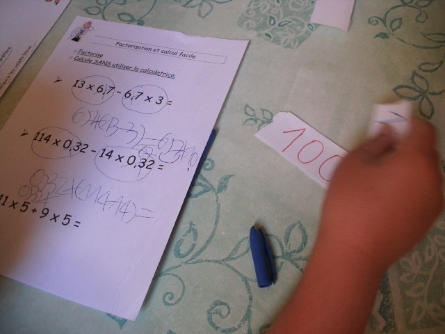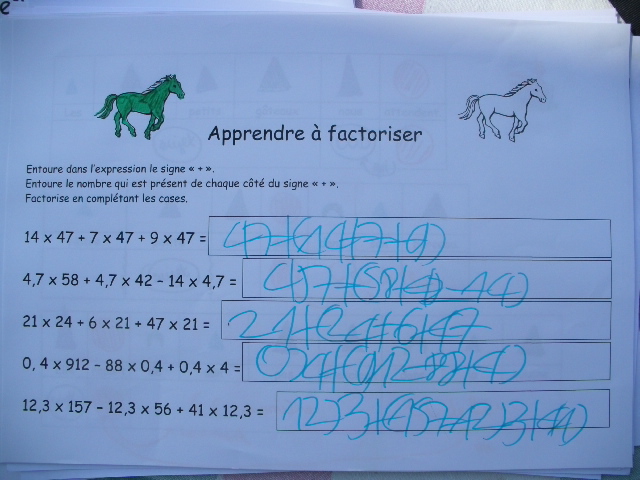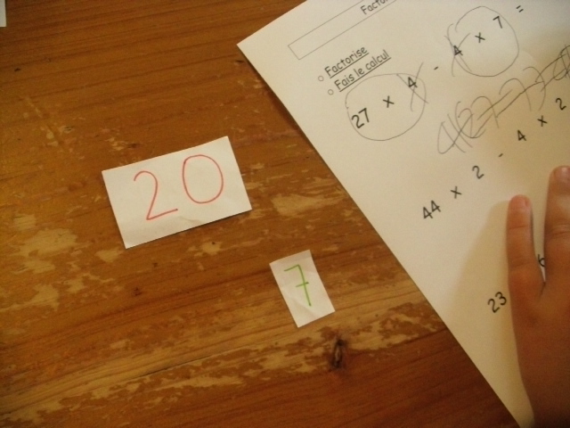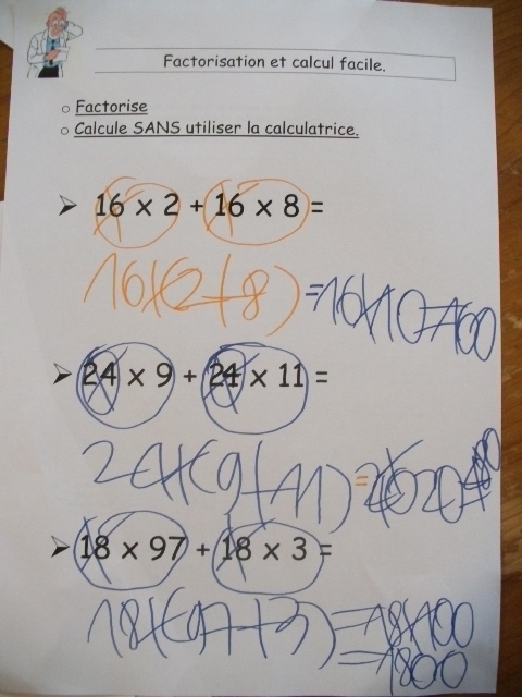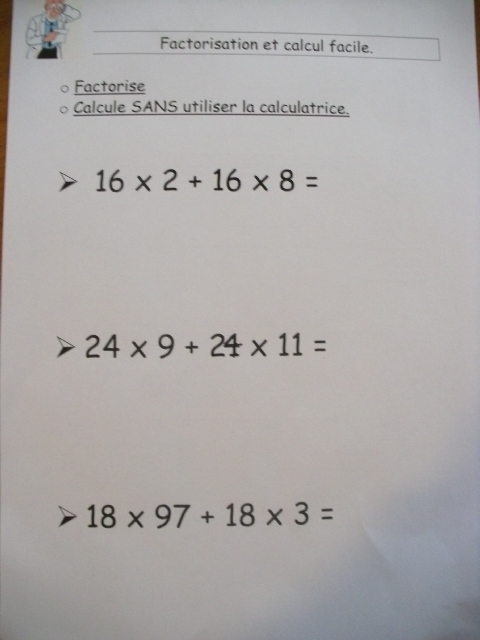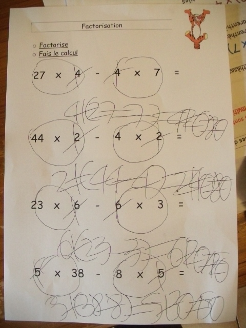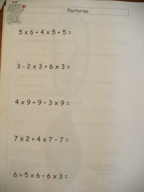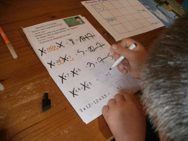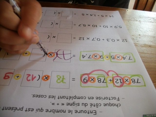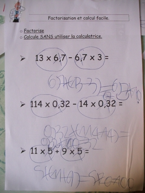 produits à mettre en facteur. Il faut que l'enfant fasse aussi