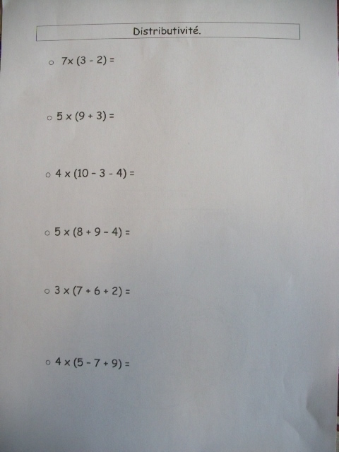 Fiches "distributivité de la multiplication / soustraction et ou addition"