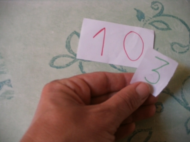 Il reconstruit donc le nombre 27 avec l'étiquette "20" sur laquelle il pose l'étiquette "7".