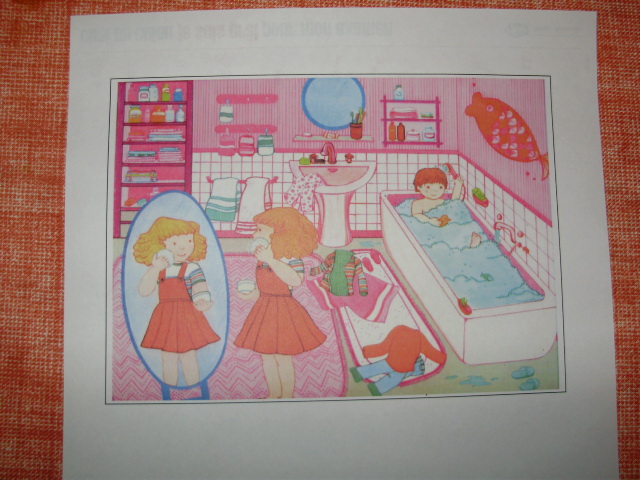 lavabo, le bain ; la serviette… et l’enfant les replace au bon endroit sur