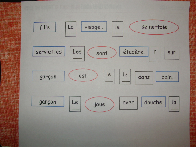 fabriquer la phrase toute faite et l’enfant la replace sur l’image.