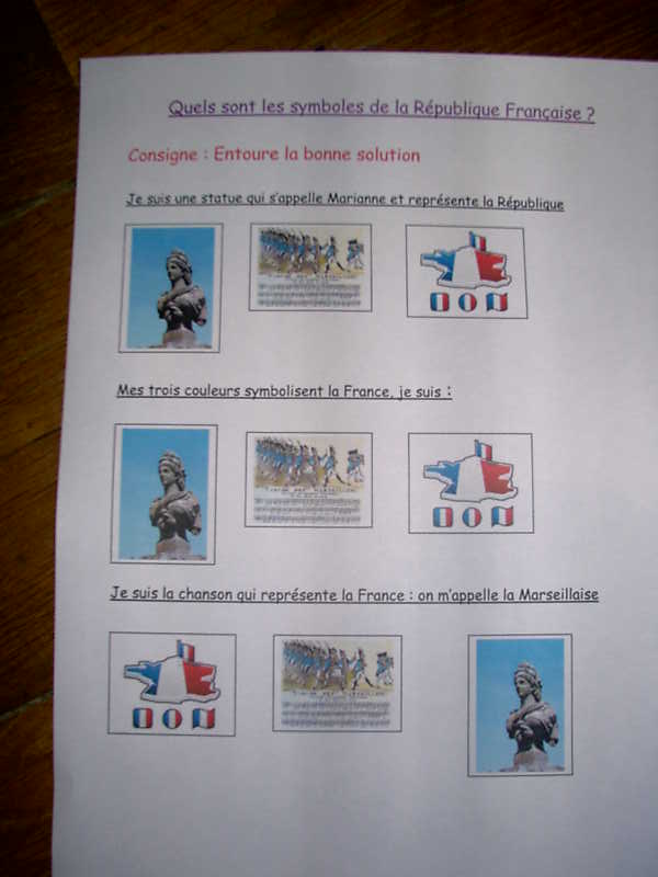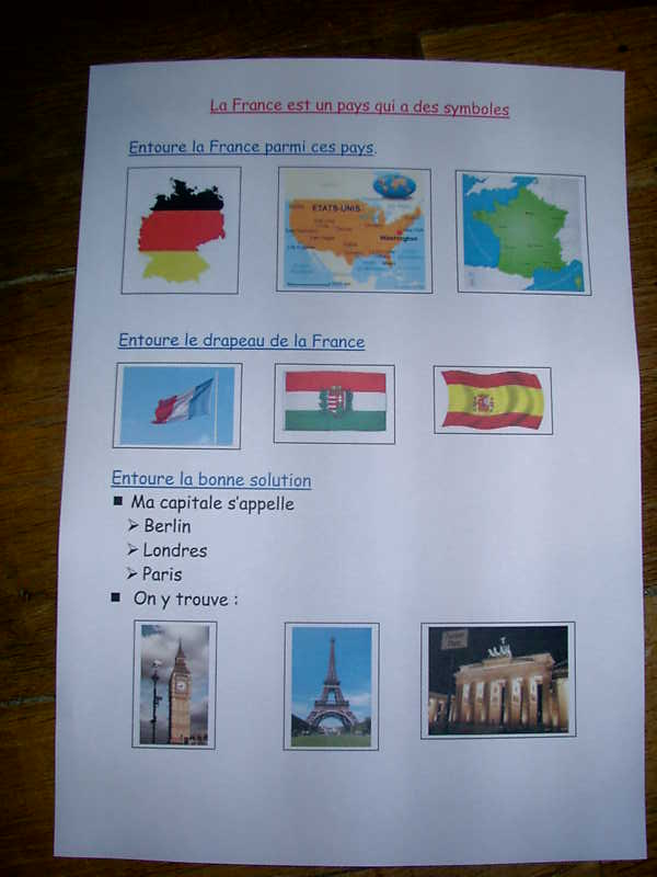 Travail créé par la maman du petit prince, pour appuyer des apprentissages réalisés en classe de CP. Fiches sur les symboles de la France type 1