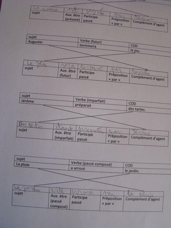 Sylvie a fabriqué des fiches pour appréhendez la construction des phrases à la forme passive. Elle nous les propose ci-dessous.