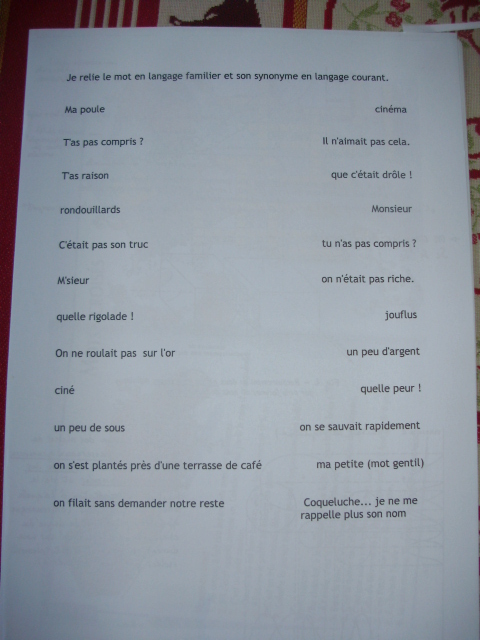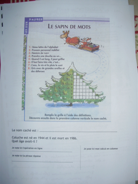 Cette page est consacrée aux fiches que Sylvie (la maman d'Augustin, le champion des progrès) m'a donné par mail.