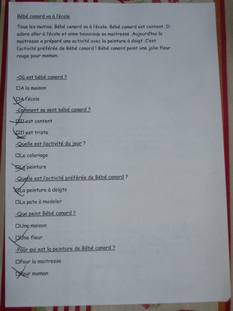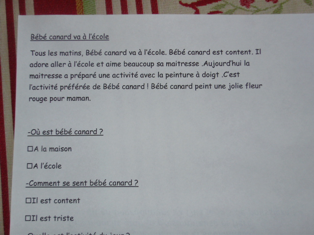 Des fiches de compréhension de lecture :