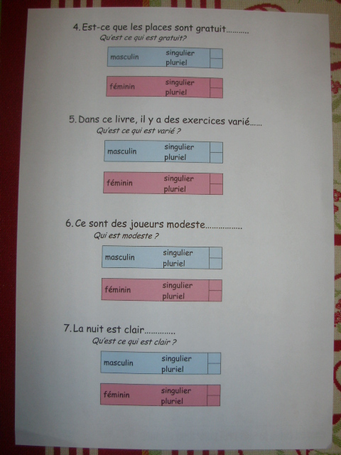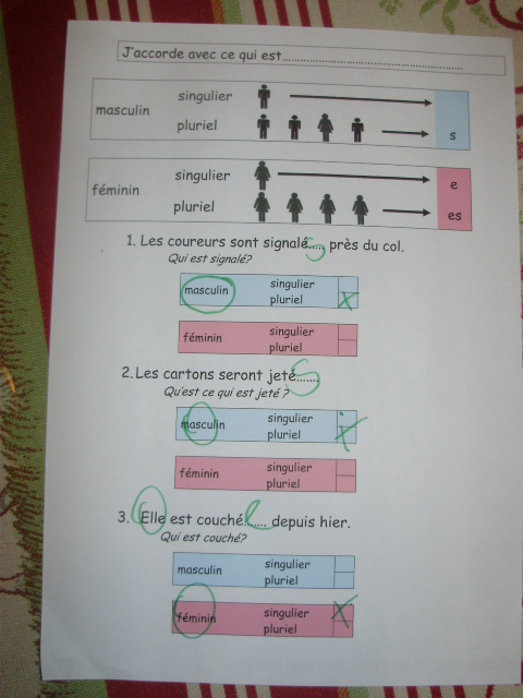 CM1, nous travaillons de plus en plus sur l'accord des mots en genre et