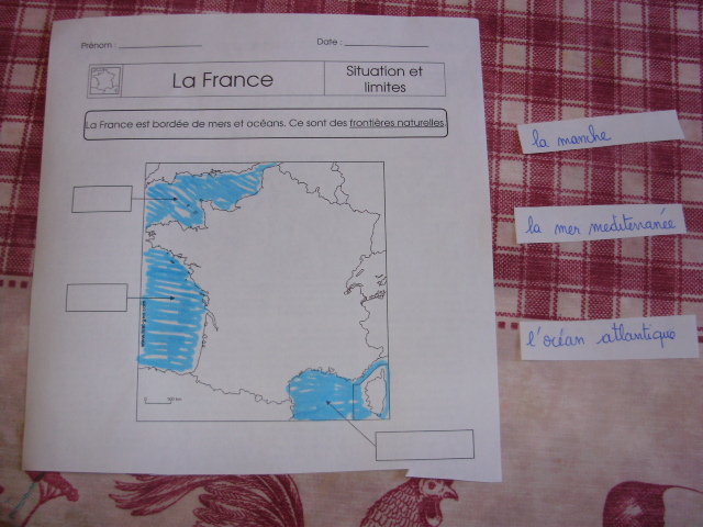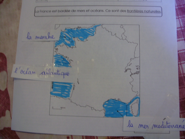 colorié les mers. L'enfant n'a plus qu'à coller les étiquettes au