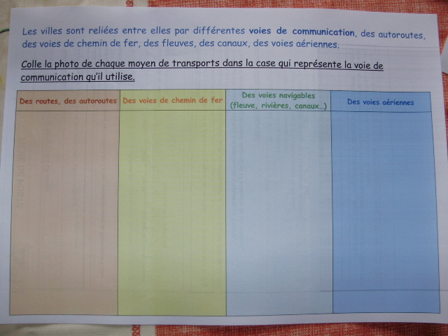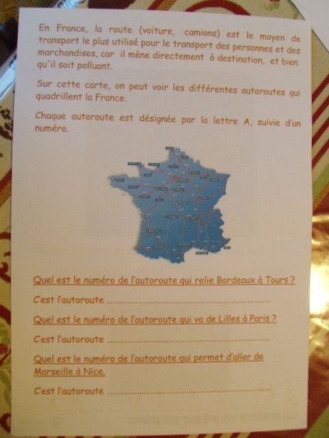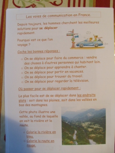 de CM1 qui a pour objectif de présenter les différentes voies de communications en France : les grands