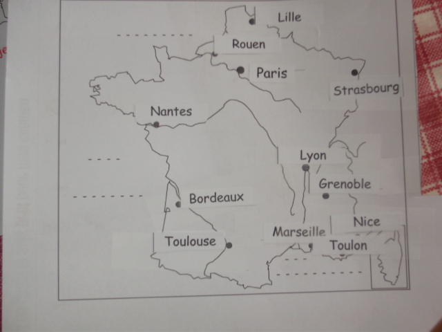 pointillés et la ville est matérialisée par un gros point. L'enfant ne