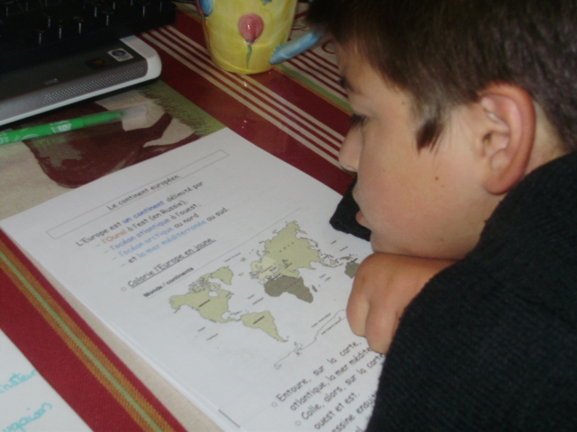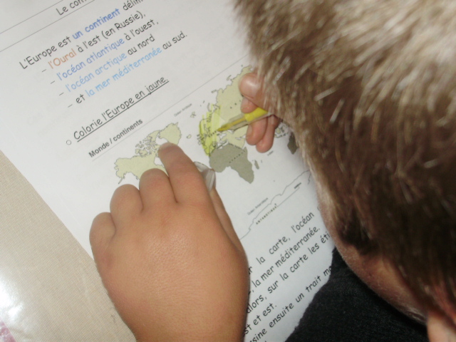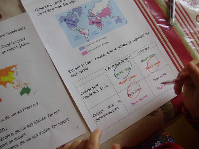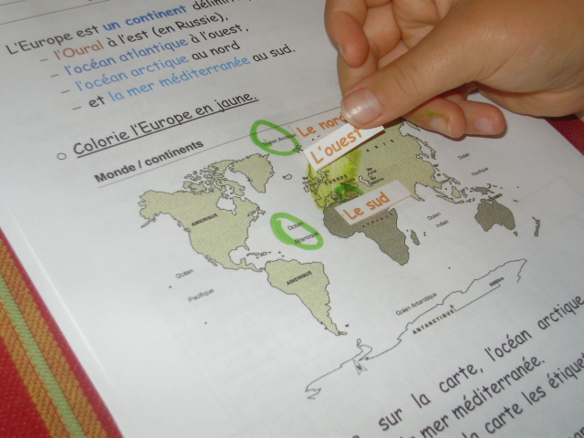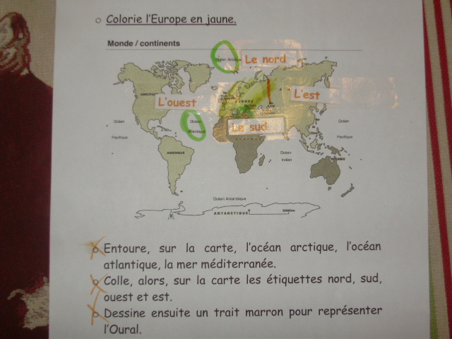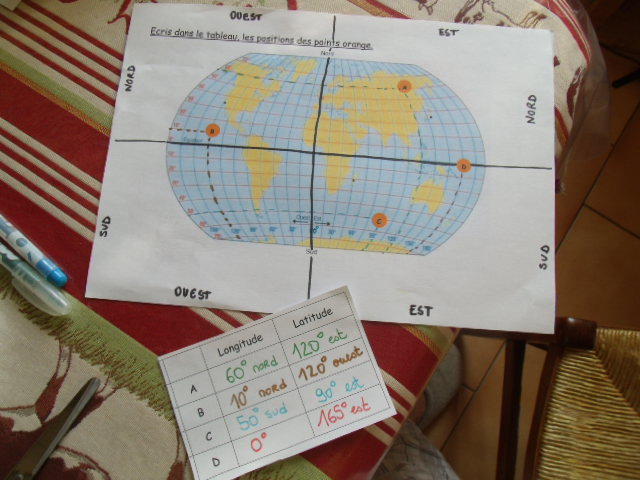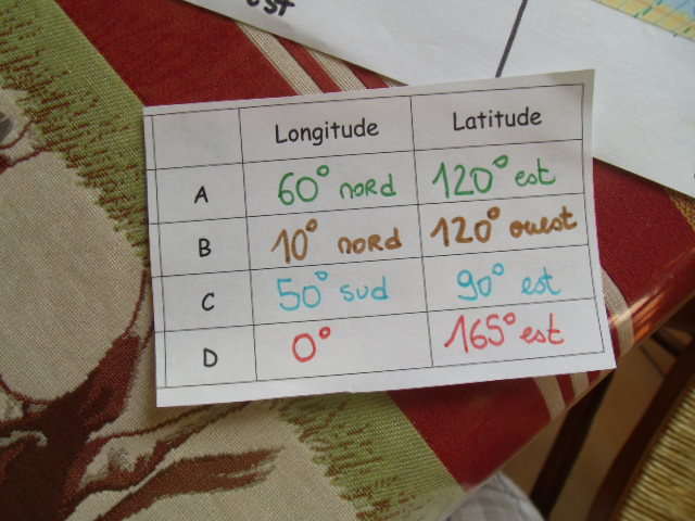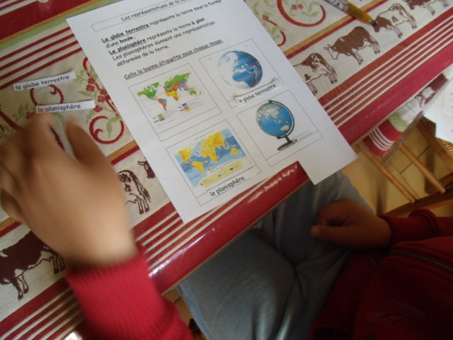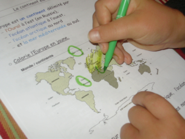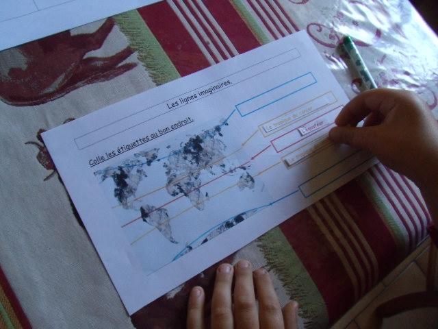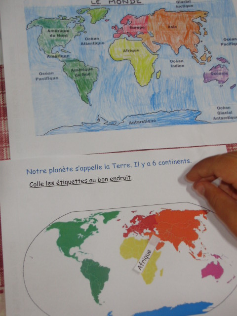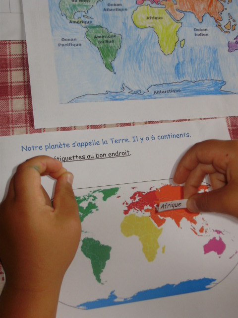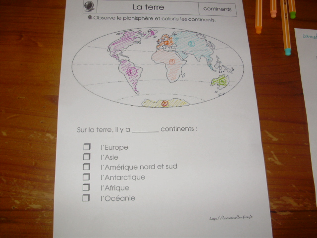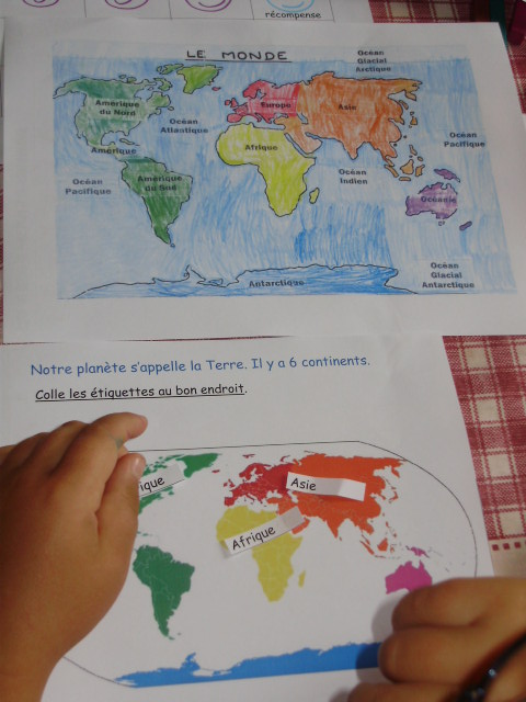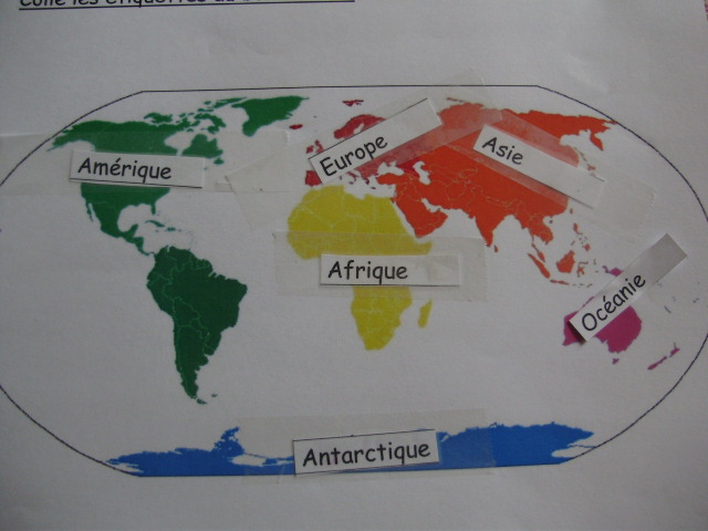 un numéro sur chaque continent et l'enfant indique, dans la liste qui