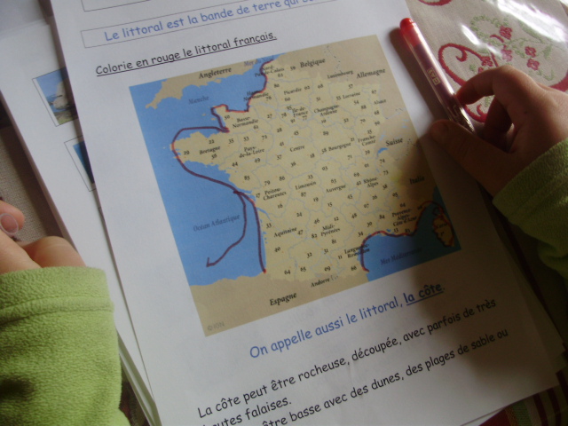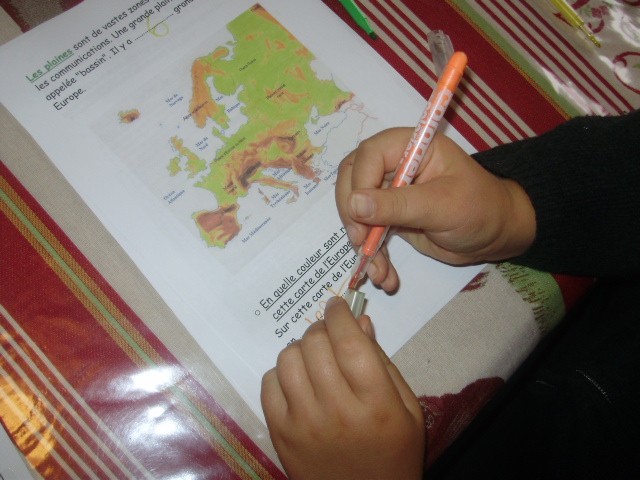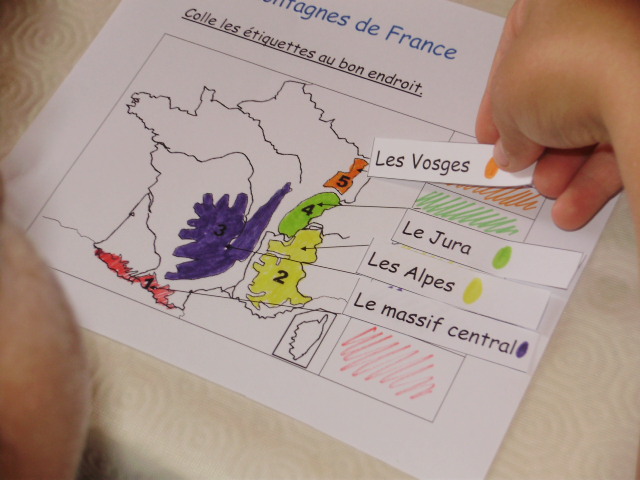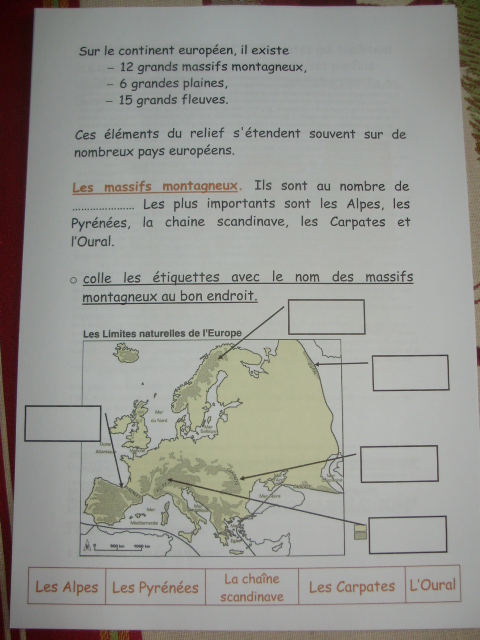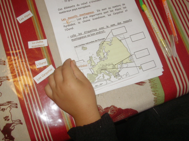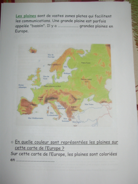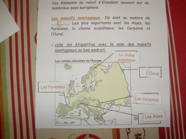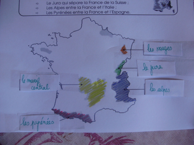 travail. Puis, je colorie toujours les montagnes sur la carte et