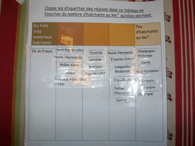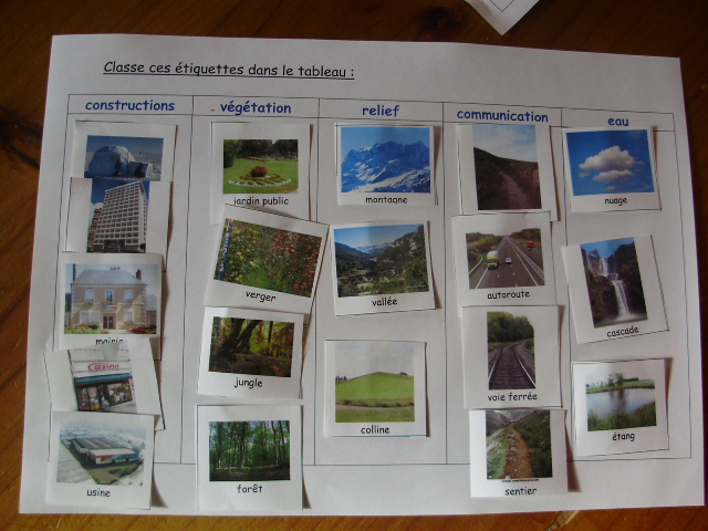 propose sous forme répétitive. L'enfant doit répartir dans un tableau