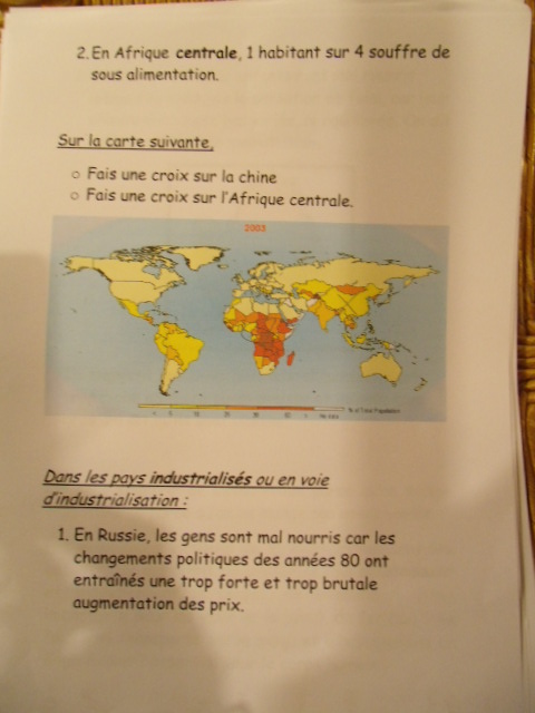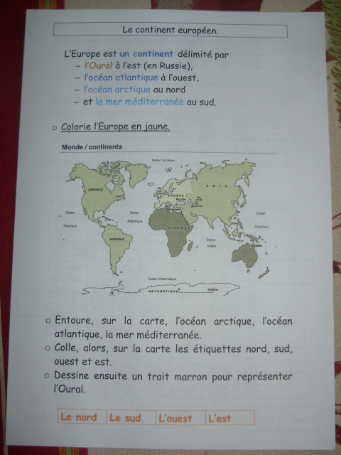 est sur le bas de la feuille, le numéro de chaque continent au fur et à