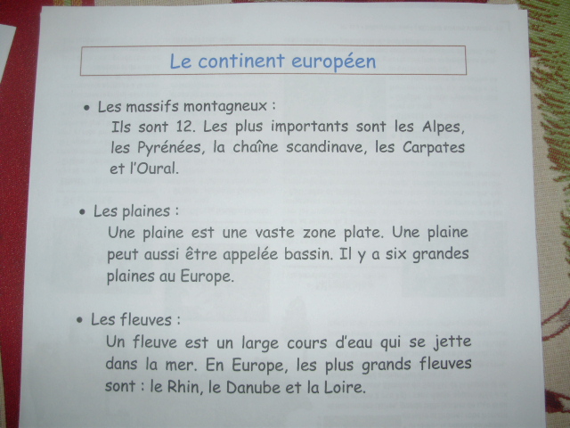 Fiches sur les continents niveau 1format wordformat pdfDans