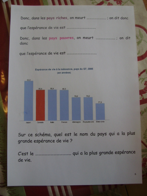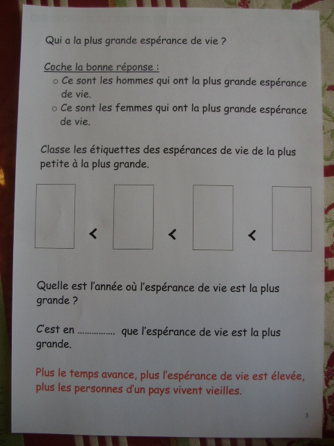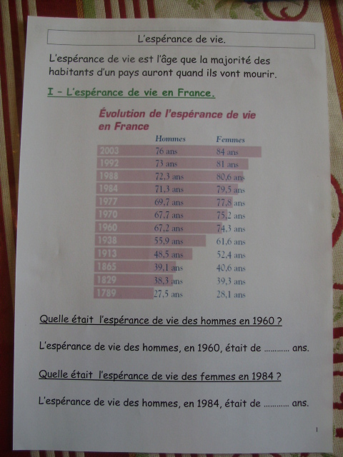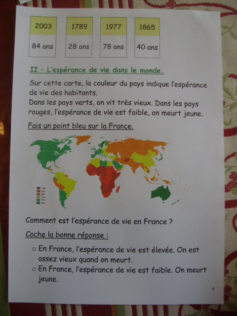 C'est en lien avec la leçon précédente que nous avons abordé la notion d'espérance de vie des habitants d'un pays.