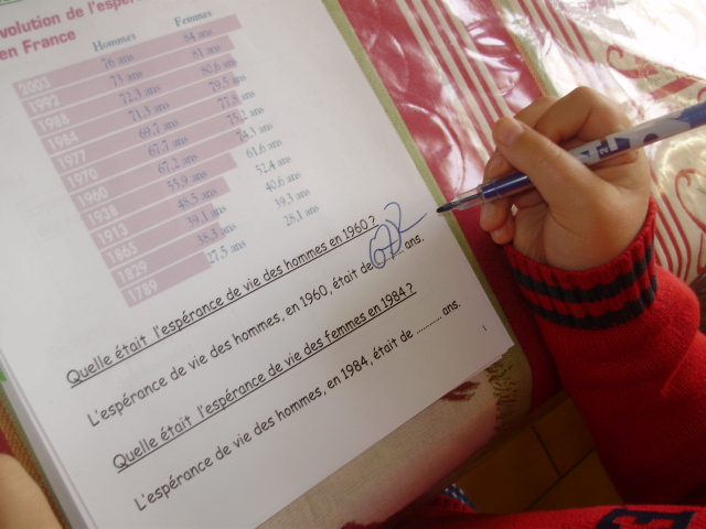 table, avant de la faire à l'école ; cela permet d'augmenter son