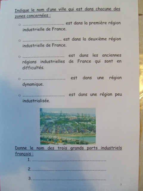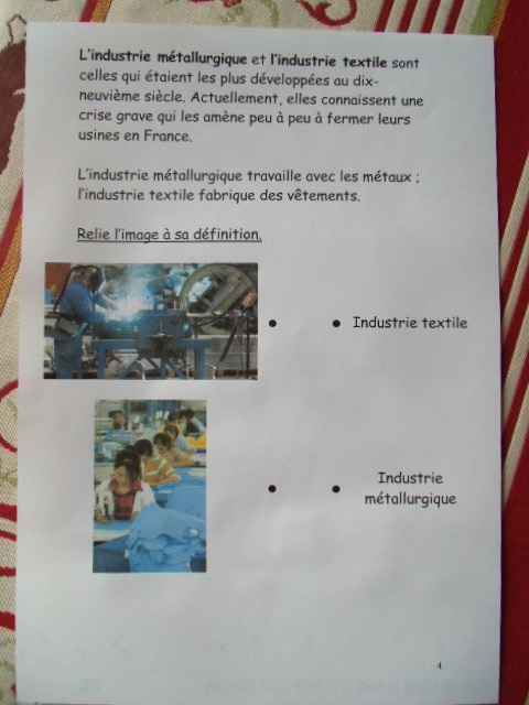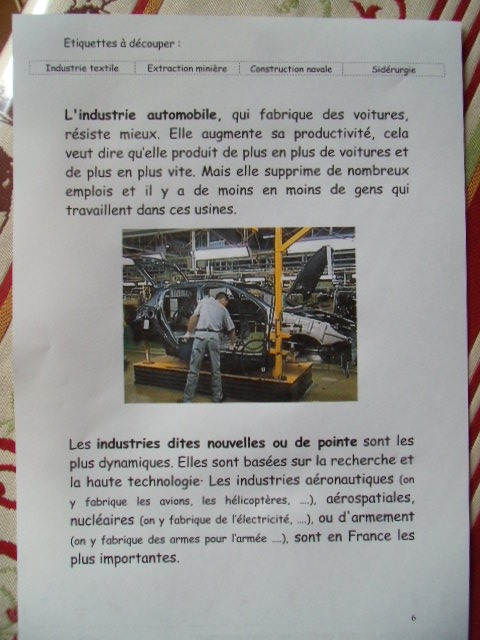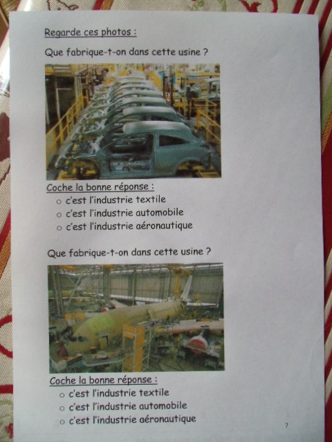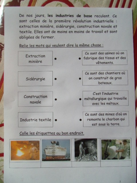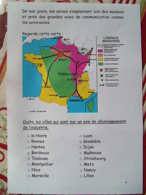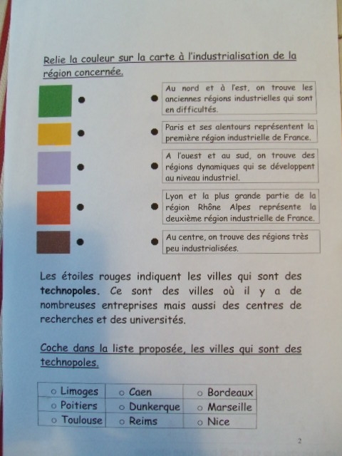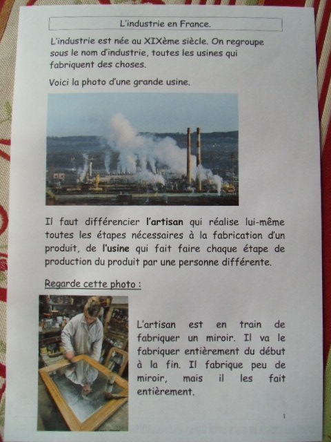 de CM1 qui porte sur la découverte de l'industrie française et sa localisation.